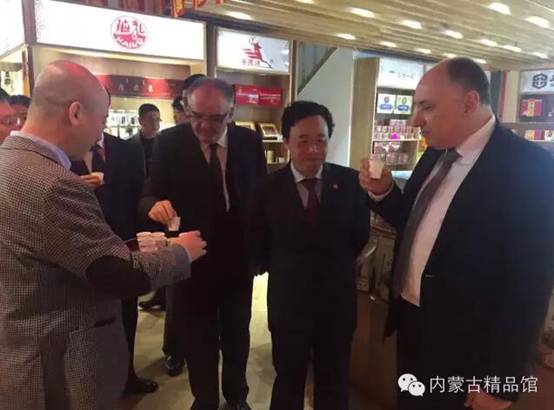 期間屈冬玉副部長與中東歐國家駐華使館大使、外交部和質(zhì)檢總局等代表參觀內(nèi)蒙古精品館。