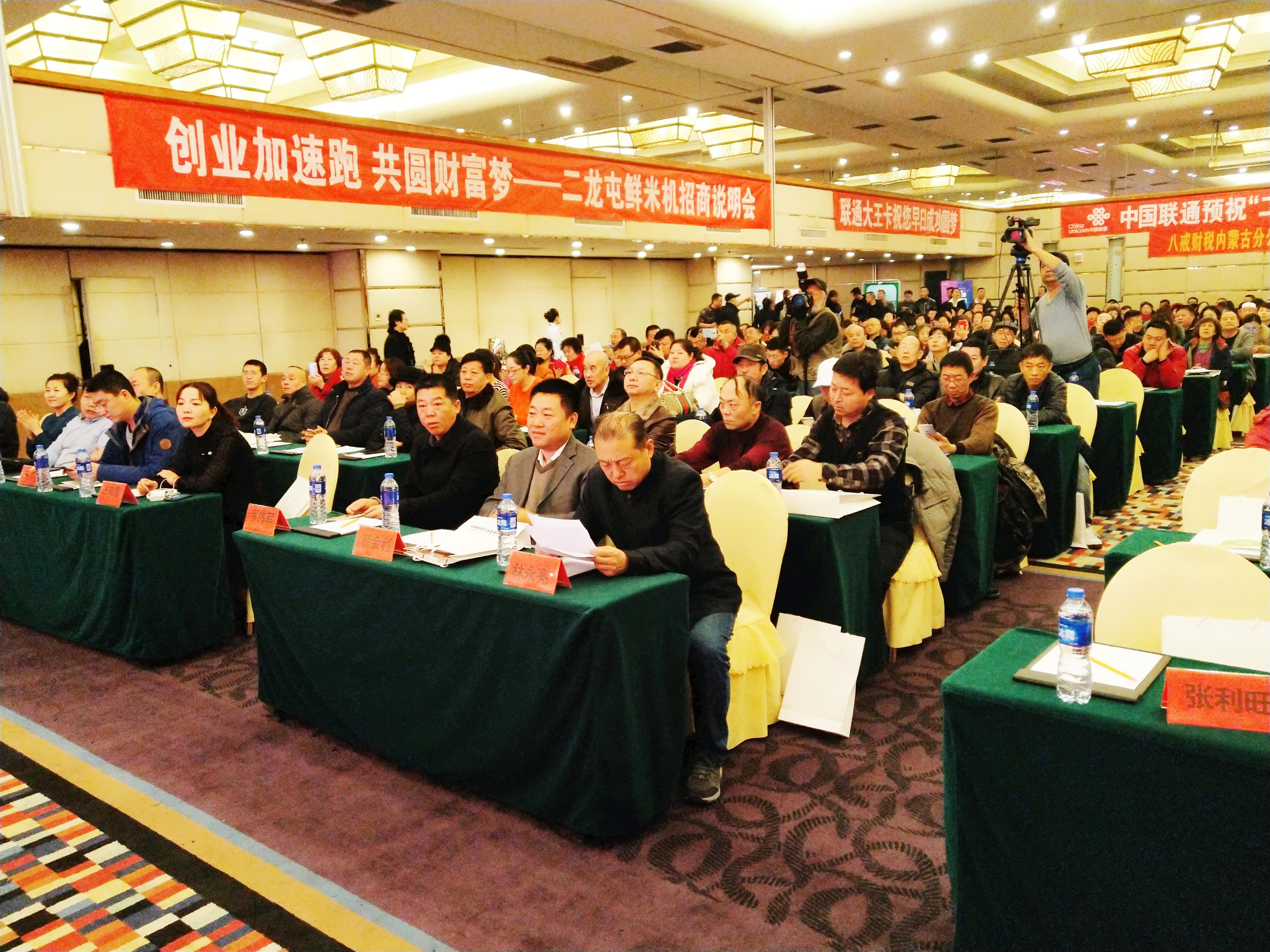 2018年127日,內(nèi)蒙古農(nóng)牧業(yè)產(chǎn)業(yè)化龍頭企業(yè)協(xié)會會員單位內(nèi)蒙古二龍屯有機農(nóng)業(yè)有限責任公司在內(nèi)蒙古呼和浩特假日酒店成功舉辦 “二龍屯共享鮮米機”招商會。內(nèi)蒙古農(nóng)牧業(yè)產(chǎn)業(yè)化龍頭企業(yè)協(xié)會執(zhí)行會長林永亮、內(nèi)蒙古農(nóng)牧業(yè)科學(xué)院農(nóng)畜產(chǎn)品加工研究所所長王曉東應(yīng)邀參加會議。會議由內(nèi)蒙古電視臺經(jīng)濟頻道主持人李樂主持。