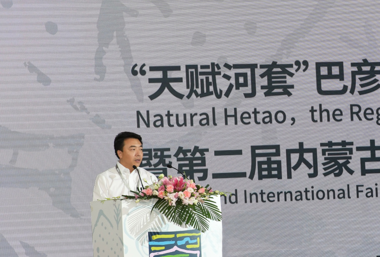 巴彥淖爾市委書記常志剛致辭并介紹“天賦河套”品牌建設(shè)情況、巴彥淖爾招才引智及招商引資情況