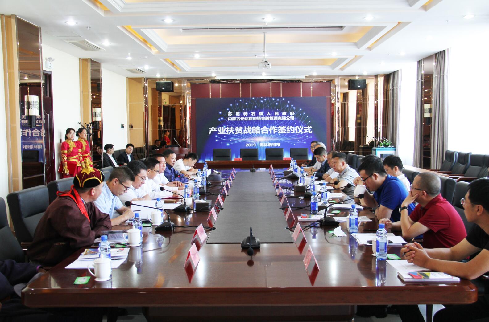 2019年9月2日,內(nèi)蒙古農(nóng)牧業(yè)產(chǎn)業(yè)化龍頭企業(yè)協(xié)會會員單位、內(nèi)蒙古元達(dá)供應(yīng)鏈金融管理有限公司與蘇尼特右旗人民政府產(chǎn)業(yè)扶貧戰(zhàn)略合作簽約儀式在錫林浩特市成功舉行。