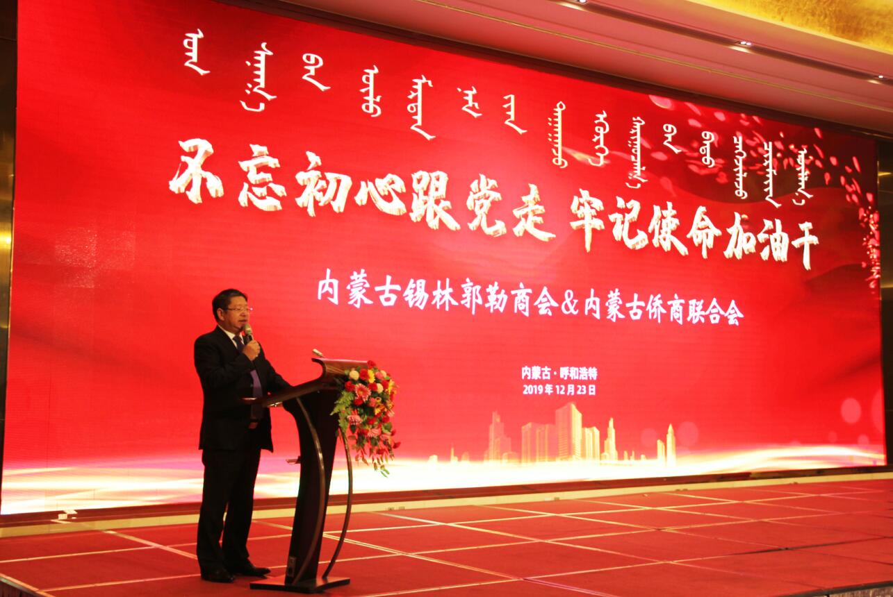 12月23日下午,以“不忘初心跟黨走,牢記使命加油干”為主題的“內(nèi)蒙古錫林郭勒商會第二屆第四次會員大會暨2019年年會”在呼和浩特舉行。來自內(nèi)蒙古錫林郭勒商會、內(nèi)蒙古僑商聯(lián)合會及各友好商會的會員企業(yè)代表、知名社會人士等出席了此次會議。內(nèi)蒙古農(nóng)牧業(yè)產(chǎn)業(yè)化龍頭企業(yè)協(xié)會會長周勇、副秘書長呼群應(yīng)邀出席。
