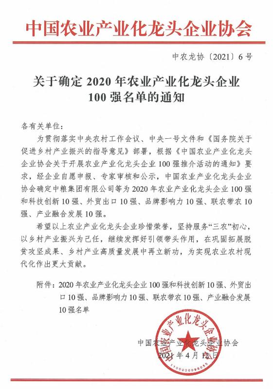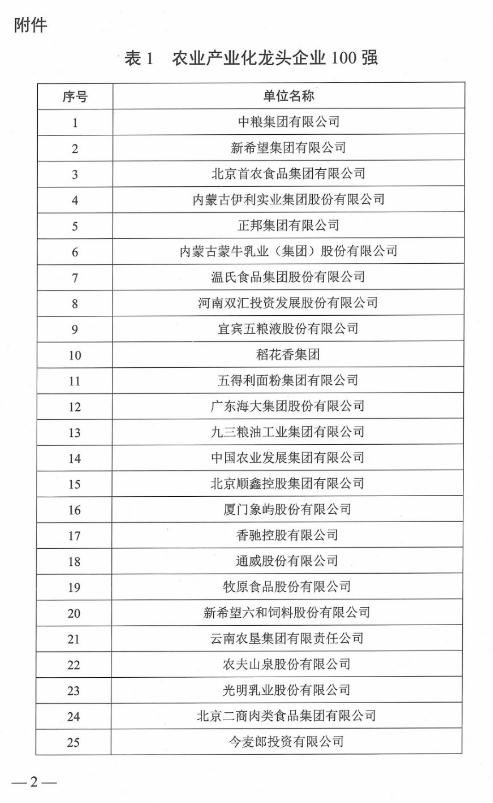 2020年農(nóng)業(yè)產(chǎn)業(yè)化龍頭企業(yè)百強(qiáng)名單發(fā)布