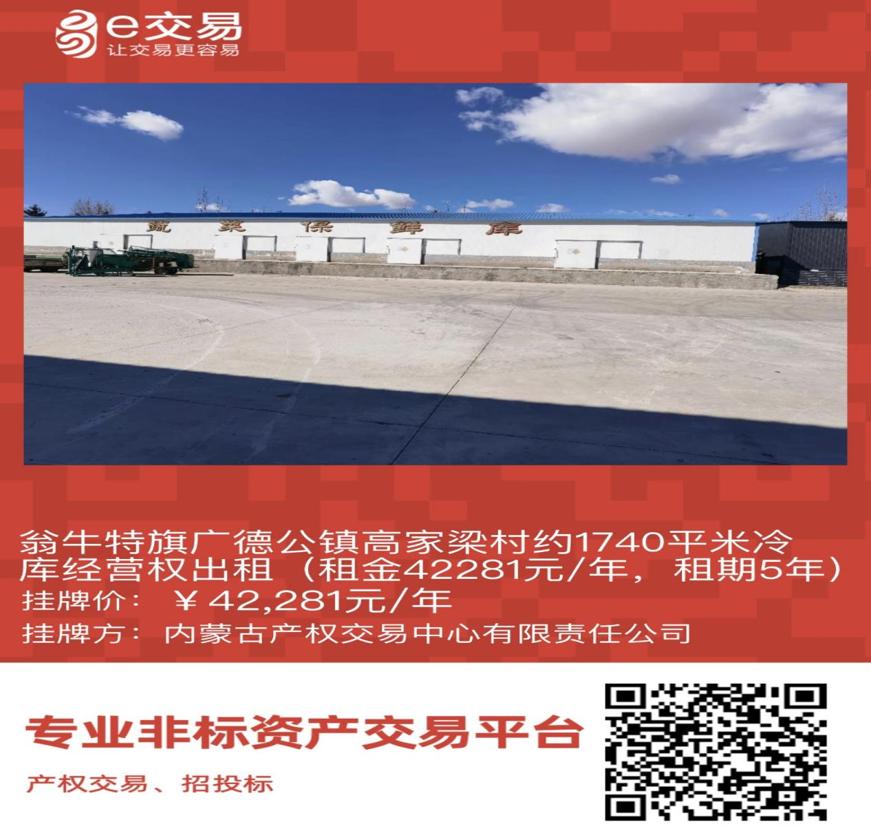翁牛特旗廣德公鎮(zhèn)高家梁村約1740平米冷庫(kù)經(jīng)營(yíng)權(quán)出租(租金42281元/年,租期5年)