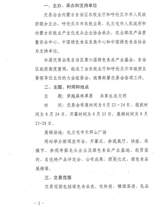 關(guān)于舉辦2013·內(nèi)蒙古(扎蘭屯)第六屆綠色食品交易會(huì)的通知