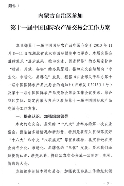 關(guān)于印發(fā)內(nèi)蒙古自治區(qū)參加第十一屆中國國際農(nóng)產(chǎn)品交易會(huì)工作方案的通知