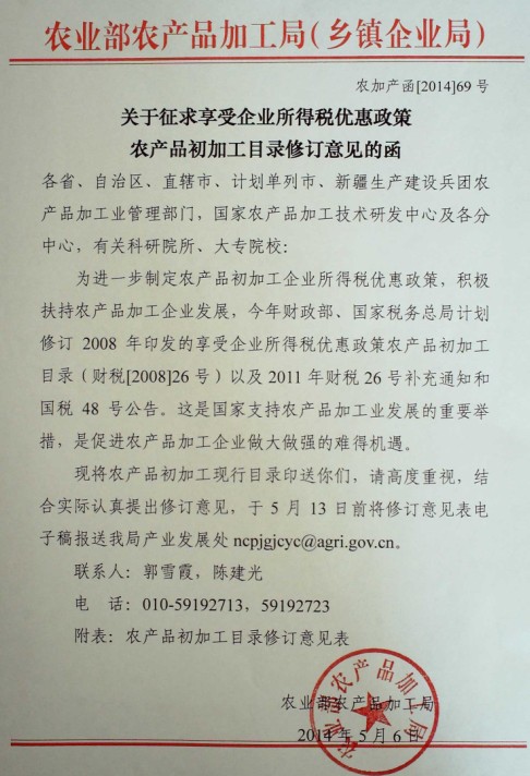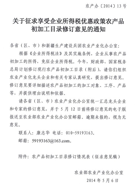 關(guān)于向會(huì)員單位征集農(nóng)產(chǎn)品初加工目錄修訂意見的通知