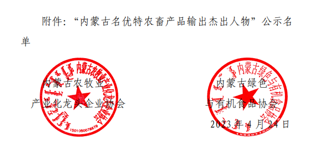 關(guān)于公示“內(nèi)蒙古名優(yōu)特農(nóng)畜產(chǎn)品輸出杰出人物”的通知
