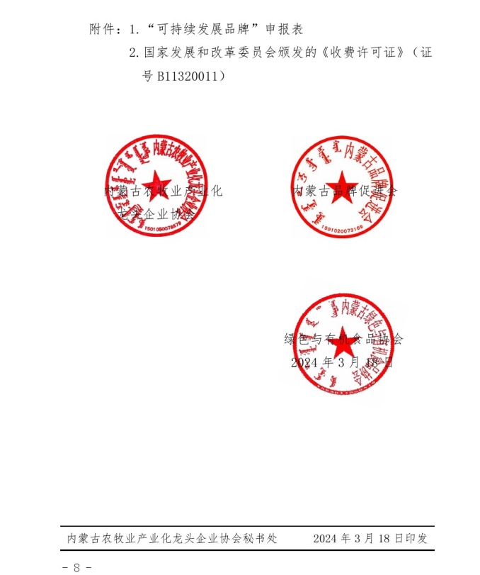 關于開展2024年度首批“內蒙古可持續(xù) 發(fā)展品牌”評價認定工作的通知
